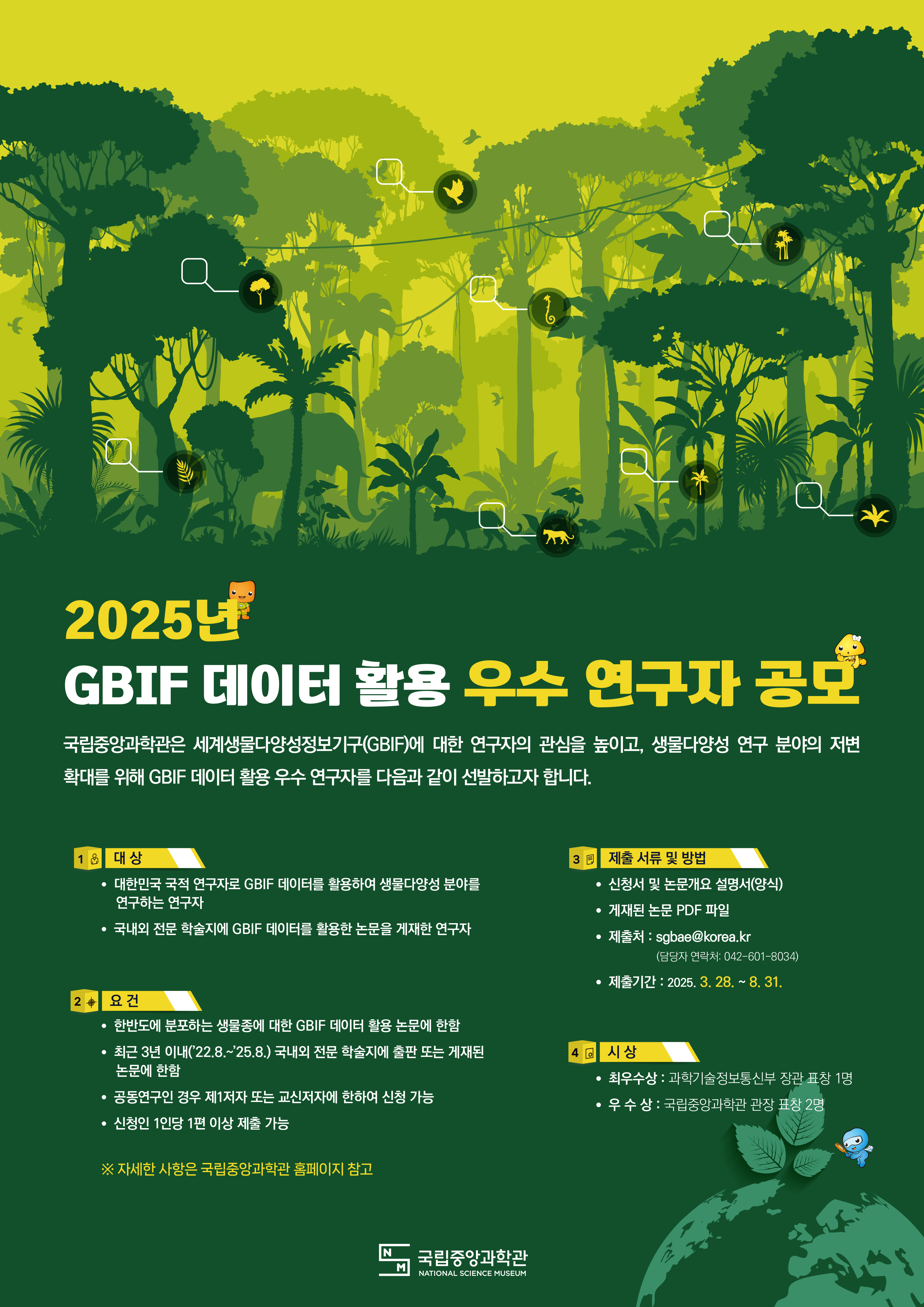 [국립중앙과학관] 2025년 GBIF 데이터 활용 우수 연구자 공모 포스터
