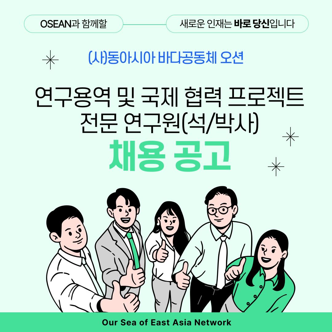[(사)동아시아 바다공동체 오션] 연구용역 및 국제 협력 프로젝트 전문 연구원(석/박사)