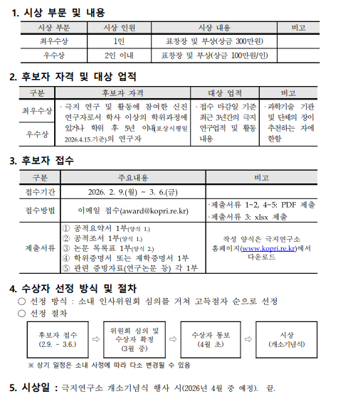 [극지연구소] 전재규젊은과학자상 시행 공고문